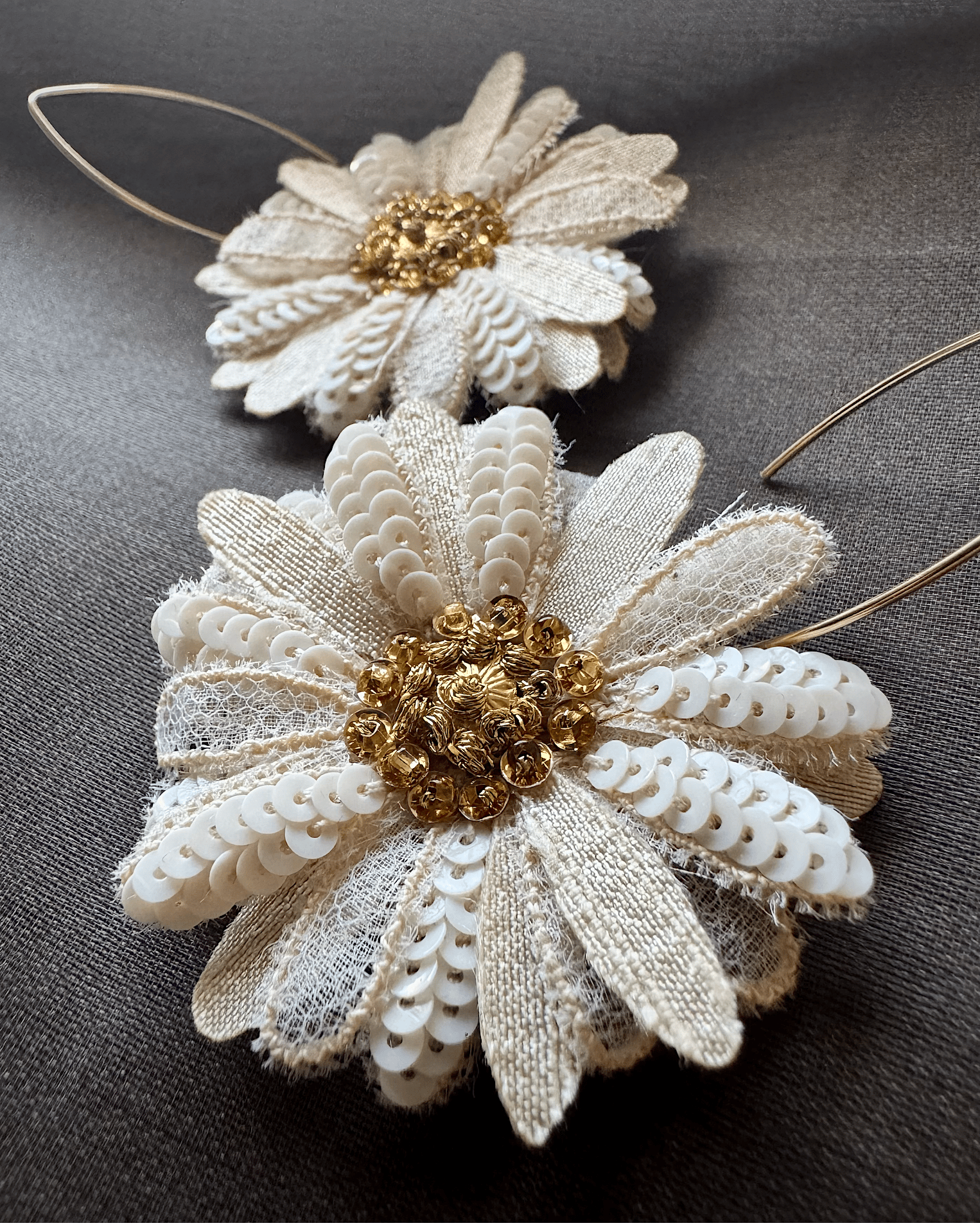 ◆ They are made with high-quality metallic thread, silk organza, silk tulle, sequins and vintage glass beads (all from France).