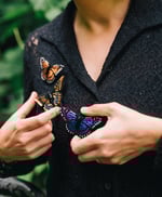 Add a splash of color and elegance to your outfit with the blue hand-embroidered Monarch butterfly brooch. Crafted with passion for French craftsmanship, this brooch features a vibrant butterfly that captures the essence of nature’s beauty. The stitching brings the wings to life, making it a standout accessory that’s both stylish and meaningful.
